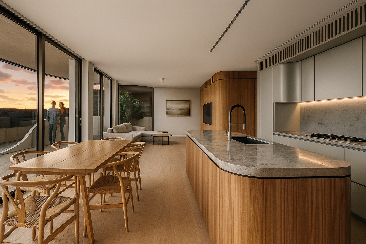At the heart of every residence is a kitchen defined by elegance, precision, and enduring craftsmanship. The kitchens also feature Italian joinery, stone benchtops and splashbacks, and soft-close cabinetry for entertaining at home.