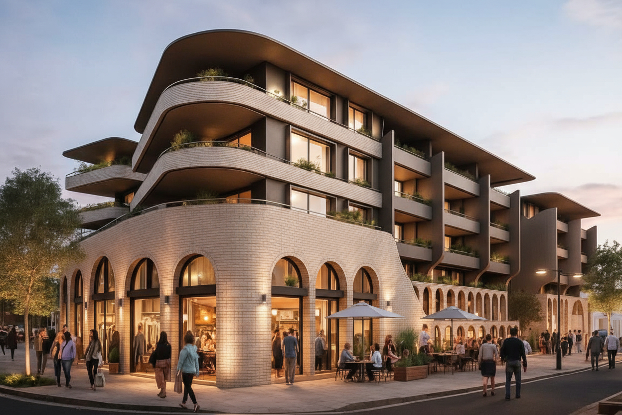 The architecture of Llanfoyst Street by Orosi is a masterclass in coastal modernism, a bold yet elegant statement that seamlessly blends organic form with urban sophistication.